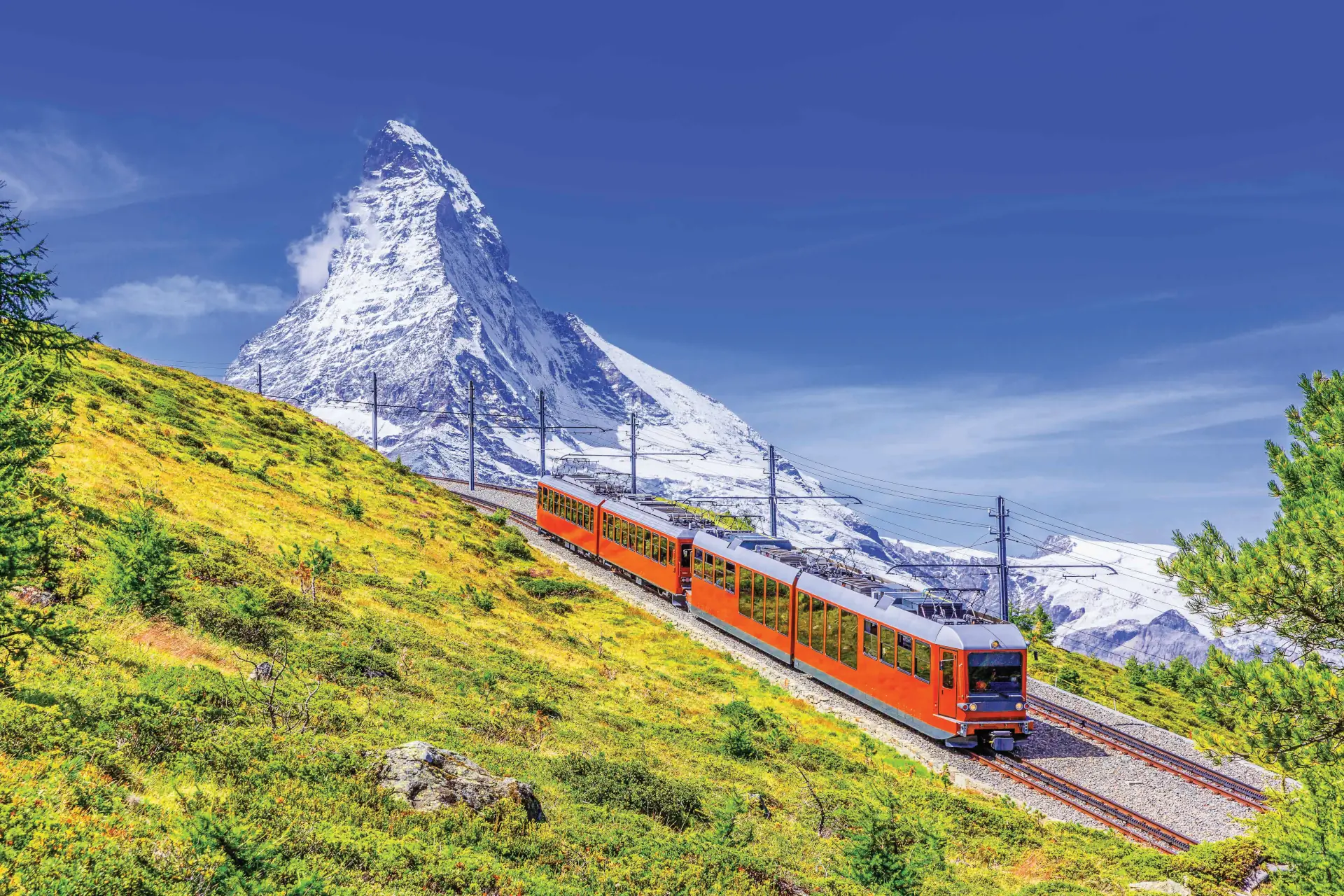 This Scenic Switzerland by Train tour is the perfect way to see Switzerland’s breathtaking mountains, charming mountain resorts, fascinating old towns, and beautiful lakes—all while you relax aboard Switzerland’s famous trains. You’ll overnight in Zurich, Lucerne, Lausanne, the Zermatt area, and St. Moritz. One of the highlights of this Switzerland train tour is the train journey aboard the Glacier Express from Zermatt, a picturesque cluster of rustic chalets beneath the majestic Matterhorn, to glitzy St.Moritz, one of the world’s most famous resorts. From your carriage windows, marvel at the thundering waterfalls, impressive snow-capped peaks, glacial ice fields, lush meadows, and picture-perfect villages. On this Switzerland train tour, you’ll also love the journey aboard the Bernina Express (aka, the red train) from St Moritz to Tirano, Italy. Traveling on the highest railway across the Alps, you’ll witness glistening glaciers, stunning mountain streams, and alpine scenery, through tunnels and over bridges that are engineering masterpieces! But that’s not all…in Zermatt you’ll also experience the Gornergrat cog railway, Europe’s highest. You’ll cross remarkable bridges, pass through tunnels along rocky ravines and beautiful lakes. The views of the Matterhorn from the top are nothing short of spectacular! Another celebrated rail journey you’ll experience on this tour through Switzerland is aboard the Golden Pass Panoramic train to Montreux, situated on the shores of Lake Geneva and known as the “Swiss Riviera.” You’ll feel immersed in the landscapes passing you by. Stunning scenery and thrilling train rides…there’s no better way to see scenic Switzerland! So, grab your camera and get ready for an amazing, value-minded adventure!